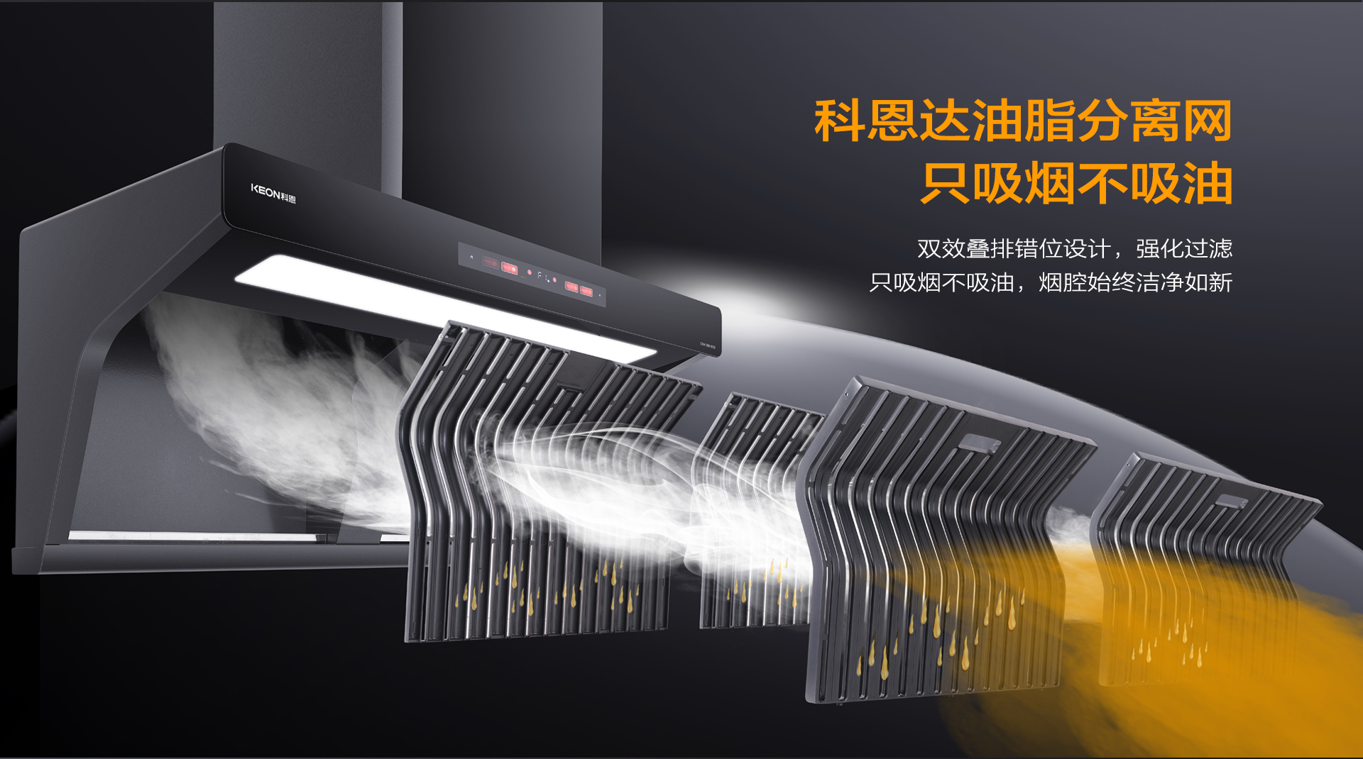 2023年6月,科恩免清洗煙機(jī)問(wèn)世,科恩達(dá)網(wǎng)板再添核心技術(shù),科恩達(dá)油脂分離網(wǎng)就此誕生??贫鬟_(dá)油脂分離網(wǎng)采用易潔太空壓鑄鋁材,經(jīng)過(guò)酸洗-噴砂工藝加之特氟龍噴涂最后高溫?zé)Y(jié),不僅不沾油、易清潔更好打理。其采用獨(dú)特的多層疊排U型錯(cuò)層結(jié)構(gòu)設(shè)計(jì),實(shí)現(xiàn)油脂分離度高達(dá)96%以上(第三方權(quán)威機(jī)構(gòu)測(cè)定),它在高效解決油煙油脂分離和冷凝的同時(shí),還能很好地起到防火阻燃的效果,更好解決廚房安全隱患,徹底告別煙機(jī)內(nèi)部清洗難題,保證煙機(jī)持久大吸力,延長(zhǎng)煙機(jī)使用壽命。