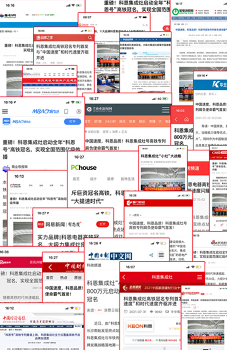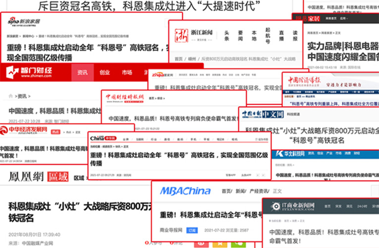 此番科恩集成灶斥資800萬投放高鐵列車,整合全網(wǎng)主流媒體進行針對性內(nèi)容營銷,以創(chuàng)意廣告和推廣內(nèi)容,360°全方位品牌曝光,進一步樹立品牌形象,擴大品牌影響力。