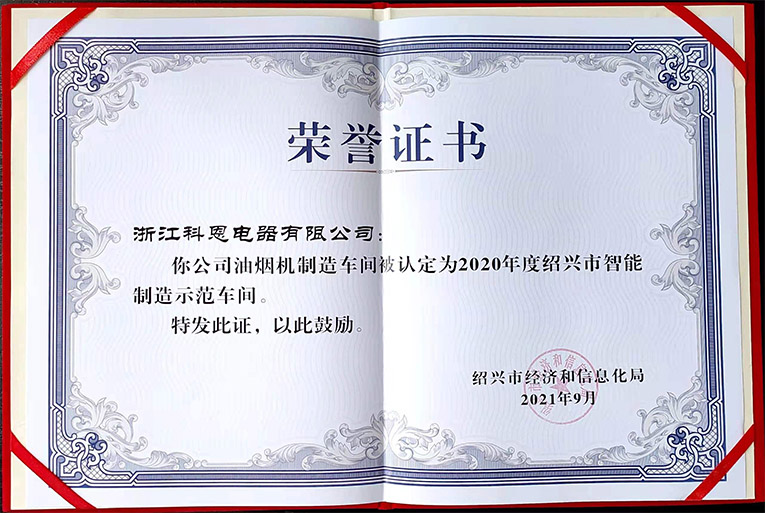 進(jìn)一步強(qiáng)化標(biāo)桿示范引領(lǐng),全面提升企業(yè)“新智造”水平,2020年度紹興市傳統(tǒng)產(chǎn)業(yè)智能化改造項目申報和評審認(rèn)定工作開展,經(jīng)企業(yè)申報、各地初審、資料審閱、現(xiàn)場踏勘等環(huán)節(jié),浙江科恩電器有限公司油煙機(jī)車間榮獲“2020年度紹興市智能制造示范車間”。