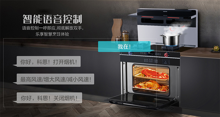 科恩集成灶十二余年深耕發(fā)展,以樂享智慧廚房為企業(yè)使命,致力于用優(yōu)質(zhì)產(chǎn)品來提升廚房生活,用技術(shù)創(chuàng)新來塑造行業(yè)標(biāo)準(zhǔn),多年來不斷創(chuàng)新產(chǎn)品,為廚房提供了多樣化的選擇,科恩S400高端變頻蒸烤消一體集成灶采用全新智能語音智控,“你好科恩”輕松喚醒,20m3/min強(qiáng)排強(qiáng)勁煙機(jī),讓油煙無處逃逸。