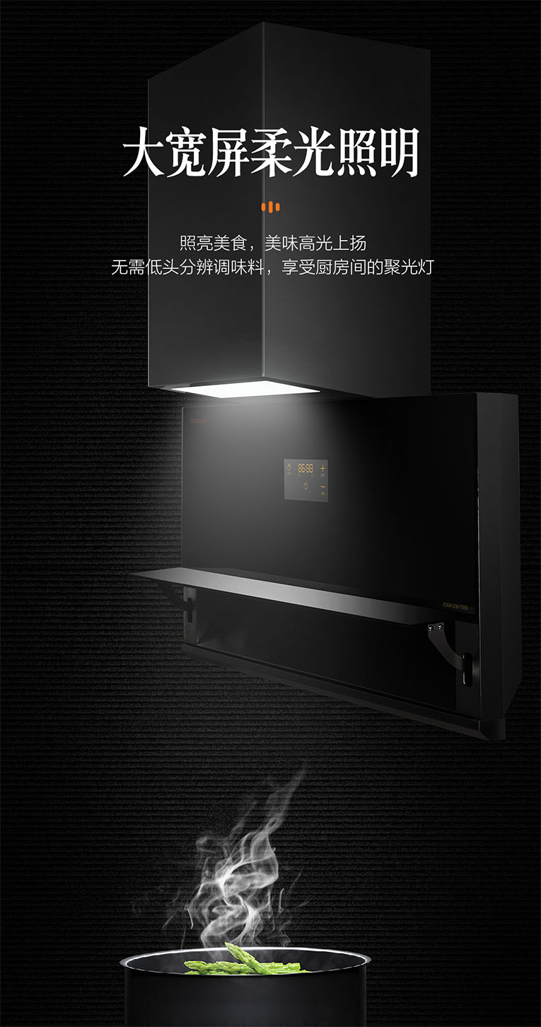 7350煙機雖然機身薄,但吸力強大,變頻電機八檔風速調(diào)節(jié),中式八大菜系輕松搞定,一級能效標準,爆炒時刻可實現(xiàn)19.5±10m3/min超大風量,最大靜壓可達800Pa,在油煙未上臉之前,就被吸得一干二凈。