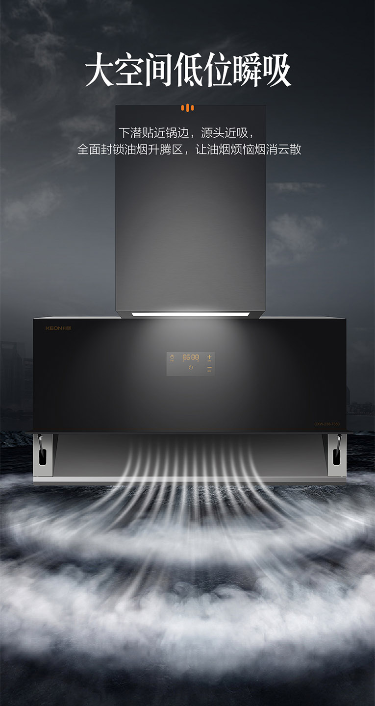 告別油膩,遠(yuǎn)離油煙,享受健康廚房!集成灶十大品牌、廚電行業(yè)十大品牌科恩新一代大吸力煙機(jī)7350滿足多種烹飪需求,讓廚房不再有油煙!