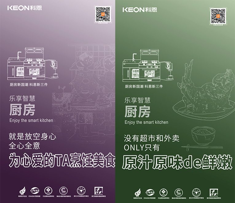 國潮正當(dāng)時,隨著國貨的崛起,消費者更加開始關(guān)注高端新國貨!科恩集成灶為千萬家庭打造樂享智慧廚房空間,創(chuàng)新設(shè)計、高端品質(zhì)、優(yōu)良服務(wù)、優(yōu)質(zhì)體驗贏得了用戶的高度認(rèn)可。順應(yīng)“國潮”趨勢,提煉“新國貨新潮牌”理念,結(jié)合“廚房新國潮,科恩新三件”,以滿足現(xiàn)代年輕群體對國貨的審美與品質(zhì)認(rèn)知,以匠心科技實現(xiàn)現(xiàn)代廚房功能需求。