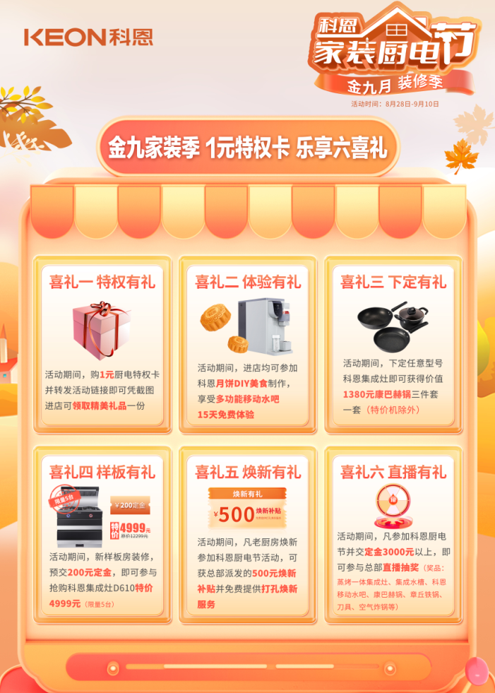 科恩電器早已提前為大家備好了金九銀十家裝好物,寶劍出鞘正待此時(shí),【金九科恩家裝廚電節(jié)】即將火爆開啟,你要的優(yōu)惠、美食、直播、大獎(jiǎng),全在這里!更多驚喜,只等你來全國(guó)各大科恩專賣店一探究竟!
