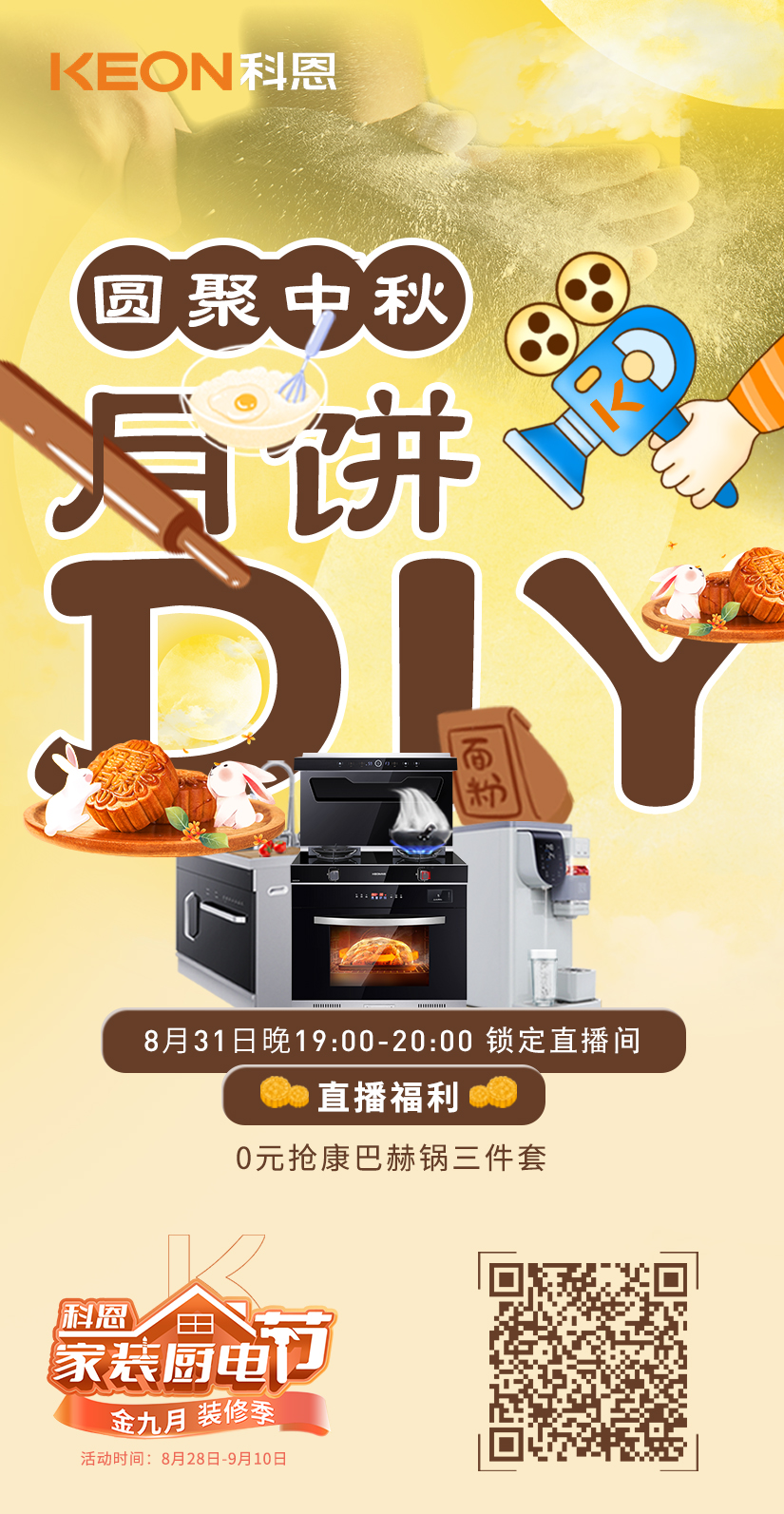 講真,吃久了外面買的月餅,總有那么一刻想要自己做來試試,而看到種種月餅DIY教程,呃……似乎難度……有點(diǎn)大?。。。?span style="text-indent:2em;">于是!科恩集成灶就貼心的在科恩家裝廚電節(jié)活動期間安排了【圓聚中秋,月餅DIY】為主題的直播活動!手把手教你用科恩集成灶做高顏值的中秋月餅,而且據(jù)說直播現(xiàn)場還有0元搶康巴赫鍋三件套的壕氣福利!