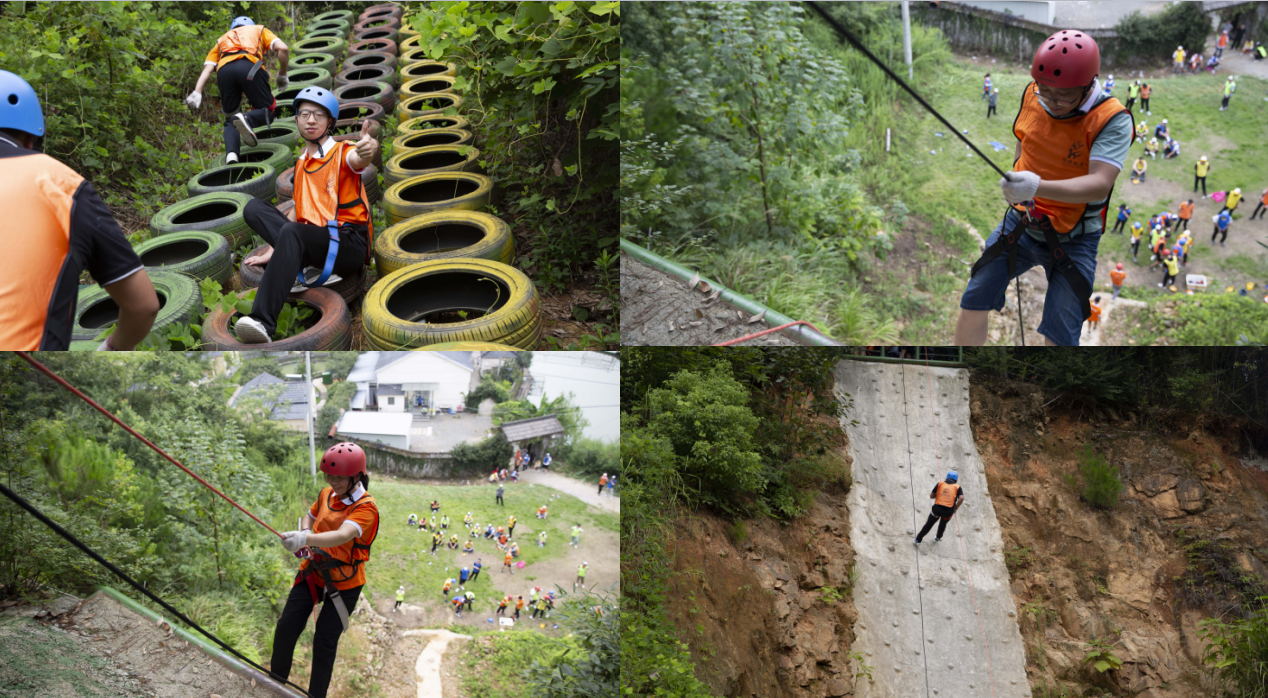利用繩索一步一步地由巖壁頂端下降到地面,借助專業(yè)繩索器械,利用單繩技術,自己給自己放繩,背朝地面,如同飛虎隊從巖頂降落到地面。巖降屬于高心理挑戰(zhàn)的玩法,體驗與自己抗爭以及成功的樂趣,從而重新認識自己,增強自信心??贫骷胰藗兎纸M挑戰(zhàn)巖降,大家披甲上陣,互相鼓勵,不畏艱難,就如在工作中面臨的困難一樣,披荊斬棘,毫不退縮。