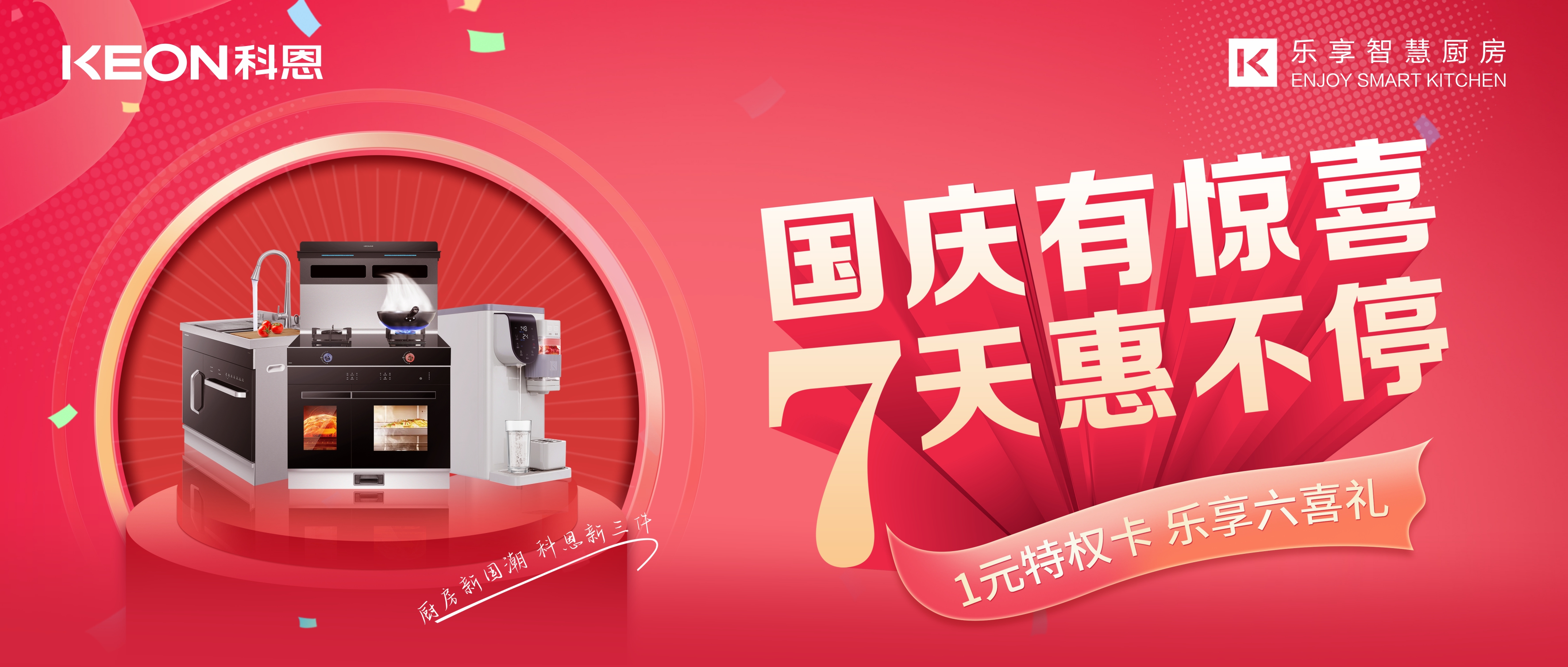 國(guó)慶價(jià)·提前享,科恩家裝廚電節(jié)之國(guó)慶專(zhuān)輯——國(guó)慶有驚喜,7天惠不停,科恩集成灶帶你嗨購(gòu)黃金周!