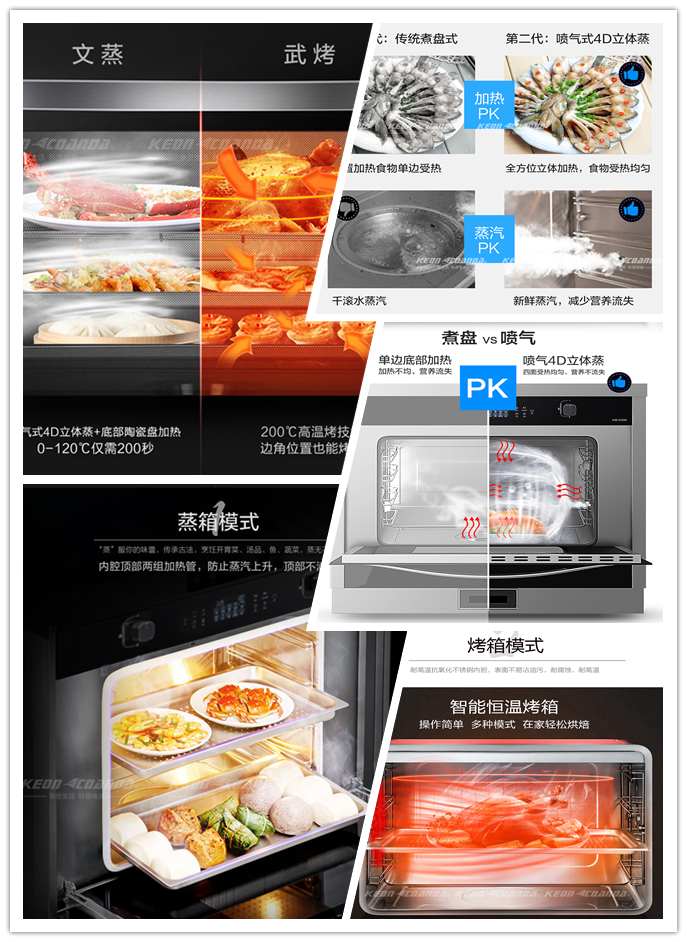 與此同時,科恩集成灶采用側吸下排的方式,嚴格把握10-20cm黃金攏煙區(qū),吸力直逼煙源,截斷油煙路徑,內置直流變頻電機,油煙吸盡系統(tǒng),提供澎湃動力,爆吸技術高達21m3/min,吸煙能力更強,煮婦(夫)們再也不用天天和油煙“戰(zhàn)斗”。更值得一提的是,科恩集成灶實用性特別強,如科恩智能蒸烤消一體集成灶擁有62L黃金容量空間,四層蒸烤架設計,一次可蒸制一桌菜,多種蒸烤模式隨心選擇,甜品、點心、烤雞等美食想吃就吃??贫髦悄苷艨鞠惑w集成灶采用4D立體直噴蒸烤模式,更能精準控溫,蒸汽動態(tài)平衡技術保證多種食材同時烹飪不串味,外置隱藏式水箱,輕輕一按即可自動彈出,加水更方便省心,有了TA煮婦(夫)們做飯不再手忙腳亂,輕松烹飪一桌大餐!
