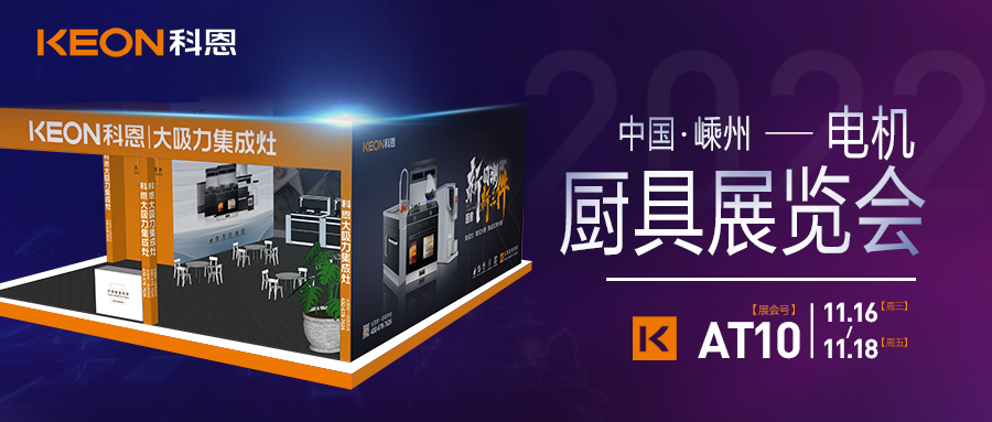 2022年11月16日-18日,第十五屆中國(guó)(嵊州)電機(jī) ·廚具展覽會(huì)將在中國(guó)廚具之都——嵊州隆重開幕,科恩集成灶作為廚電行業(yè)領(lǐng)軍品牌受邀參加本次展會(huì)(展會(huì)號(hào):AT10)
