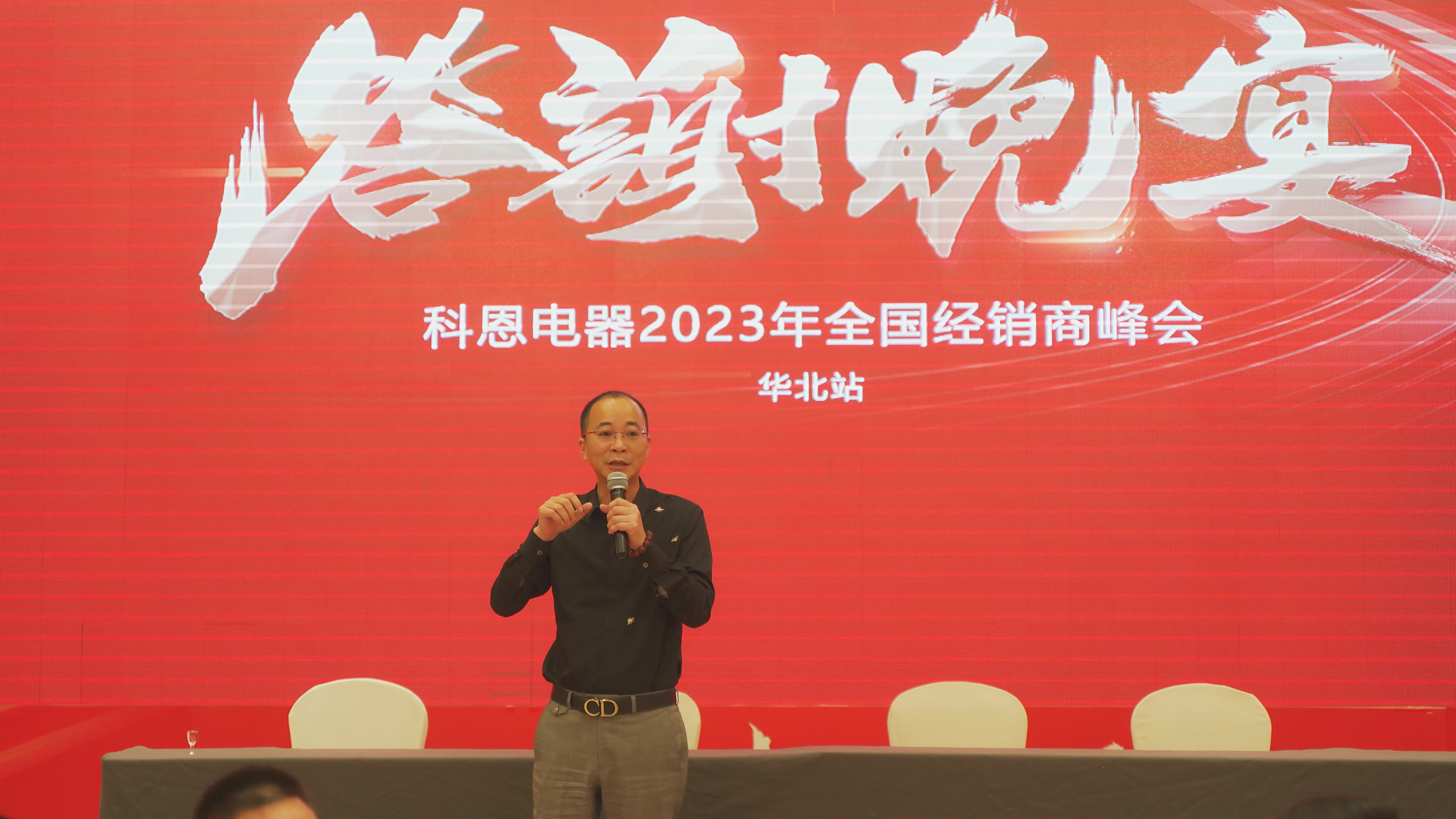 2023年3月6日,“乘勢狂飆·科恩電器2023年全國經(jīng)銷商峰會”華北站,在陜西西安隆重召開??贫鞫麻L俞鋒先生出席了本次峰會。