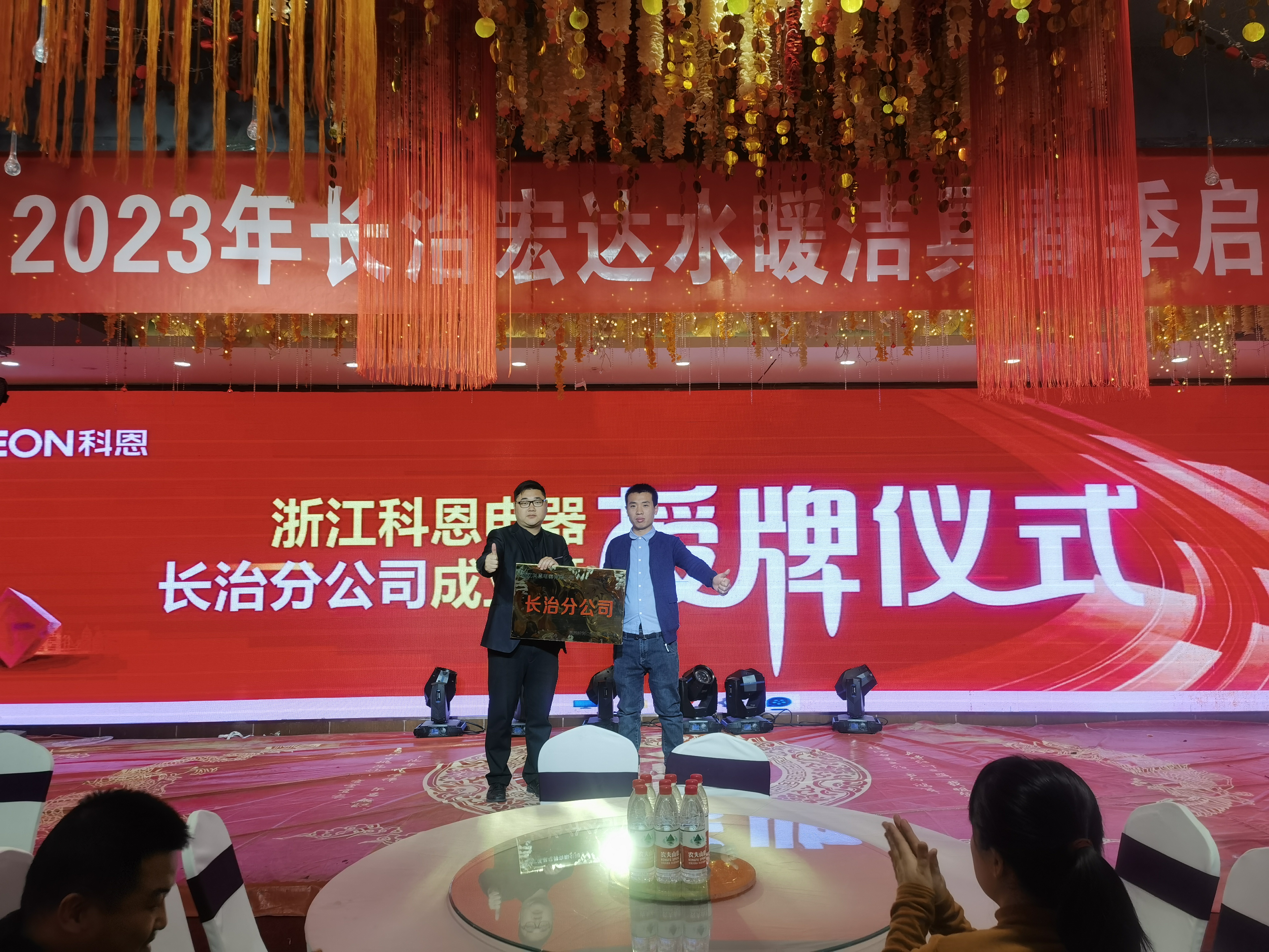 訂貨會上在,浙江科恩電器有限公司山西區(qū)域銷售總監(jiān)陳燊良,代表科恩公司授予長治專賣店“科恩長治分公司”榮譽。長治分公司是科恩第三家區(qū)域分公司,是科恩強終端、鑄大商道路上又一里程碑!