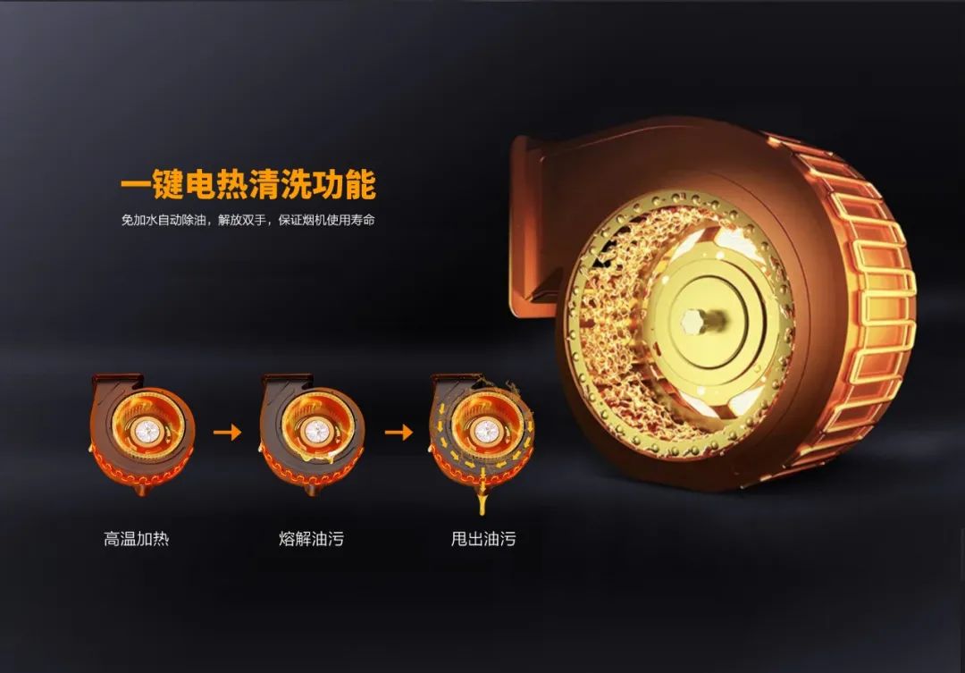 科恩免清洗煙機(jī)標(biāo)配智旋洗,高溫電加熱,有效熔化風(fēng)柜內(nèi)壁和葉輪上的部分油垢,再通過風(fēng)輪的離心力將油污甩到室外和過濾到油杯,從而完成清洗全過程,但即使這樣也無法解決風(fēng)輪長年累月因油脂油污附著負(fù)荷工作而造成的吸力下降,吸煙效果變差,清洗打理困難,甚至煙機(jī)抖動和安全等諸多問題......