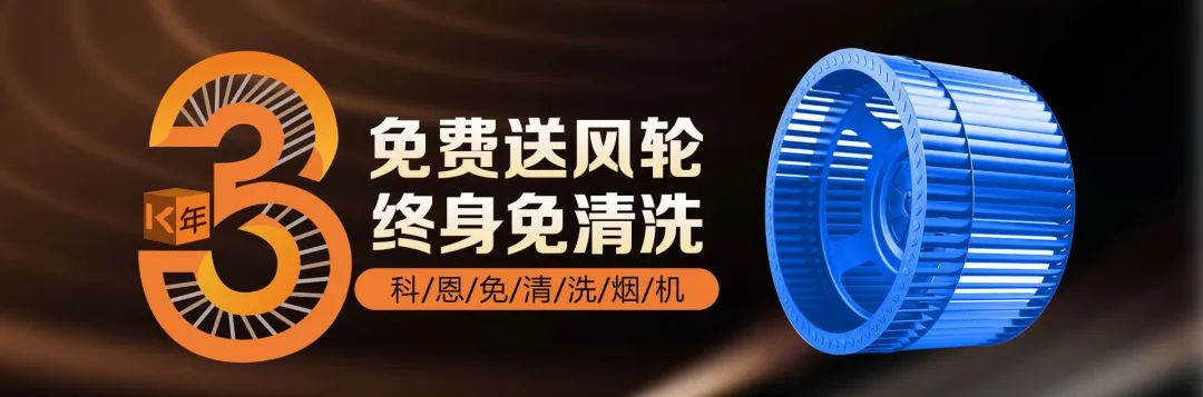 科恩電器行業(yè)率先提出3年免費(fèi)送風(fēng)輪服務(wù),徹底解決殘余油脂油污問(wèn)題,真正實(shí)現(xiàn)煙機(jī)終身免清洗!