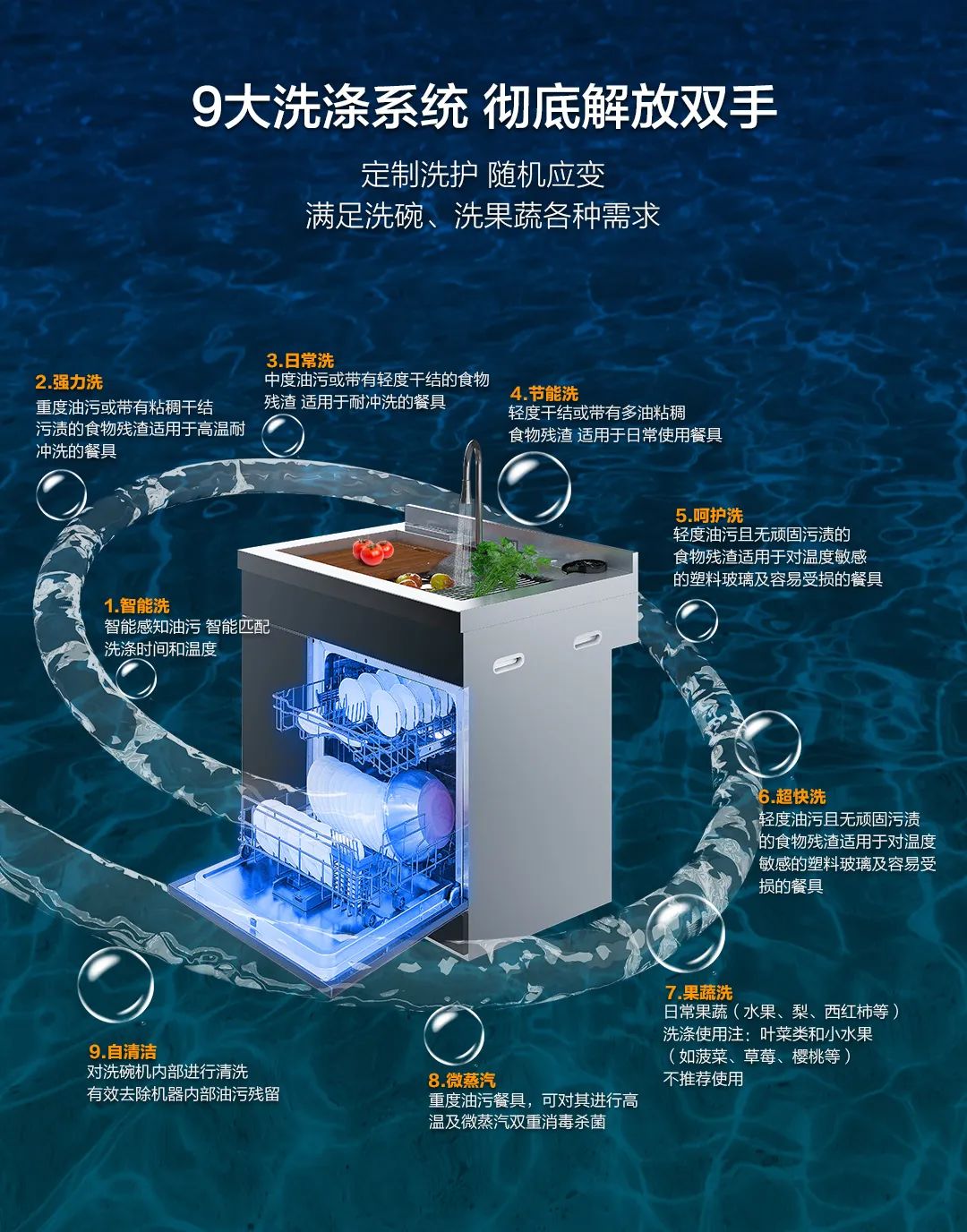 定制洗護 隨機應(yīng)變:9大洗滌系統(tǒng),滿足洗碗、洗果蔬各種需求