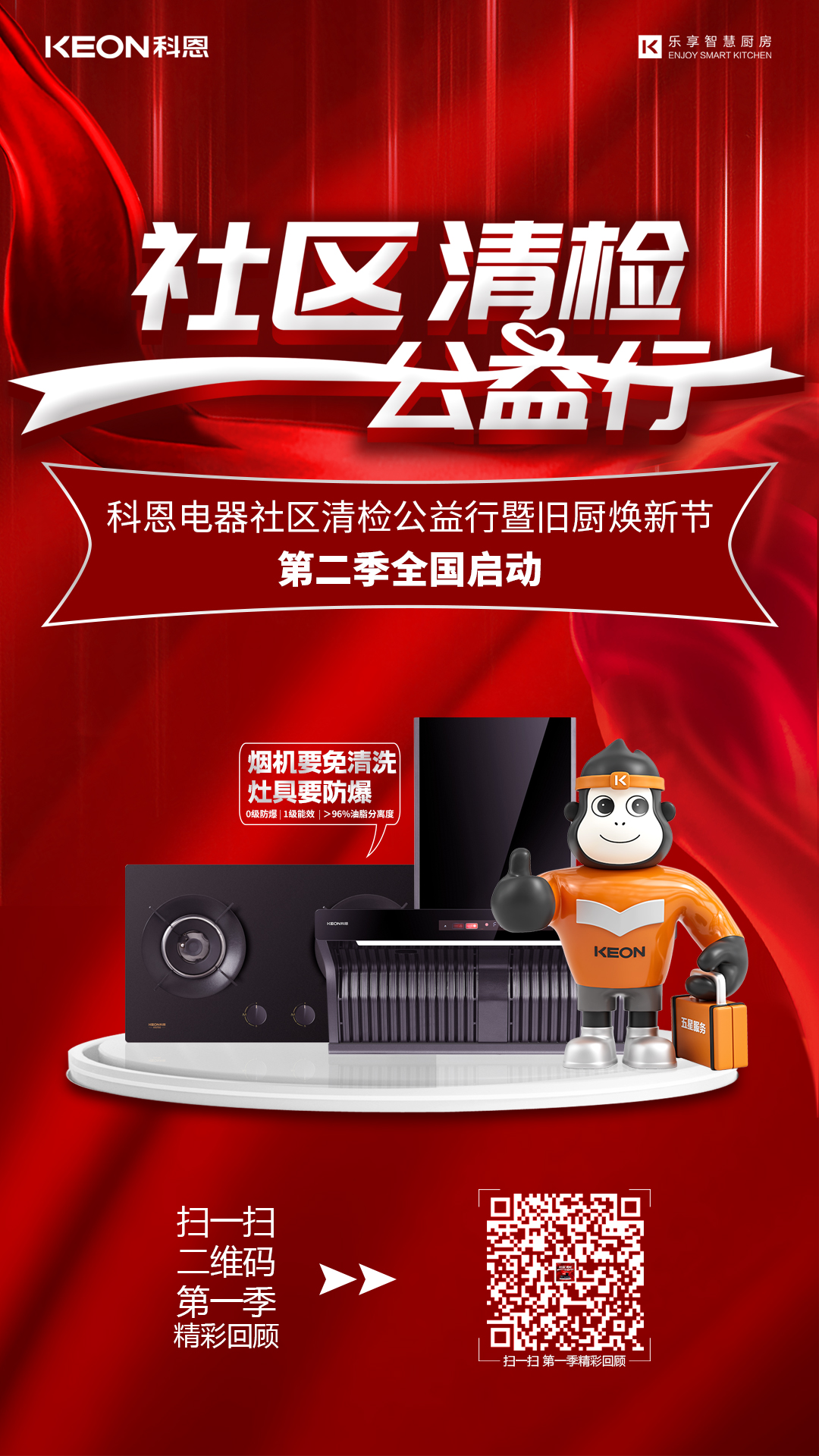 2023年,廚電行業(yè)面臨嚴酷挑戰(zhàn),怎么結(jié)合當下市場發(fā)展情況撬動新增量是企業(yè)需要思考的問題。科恩緊跟國家政策,深入開展家電以舊換新政策,以“社區(qū)清檢公益行”為主題深入千家萬戶。