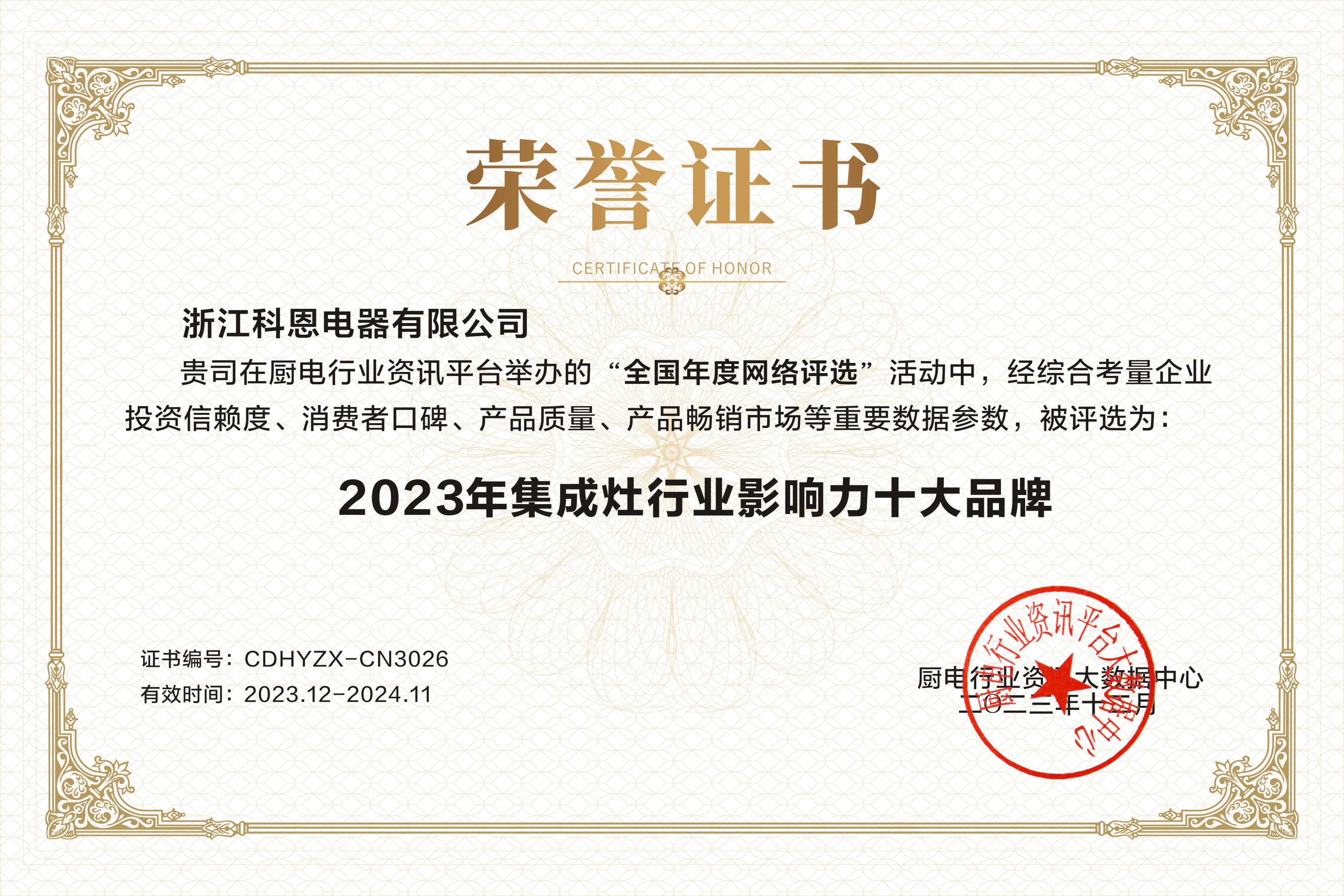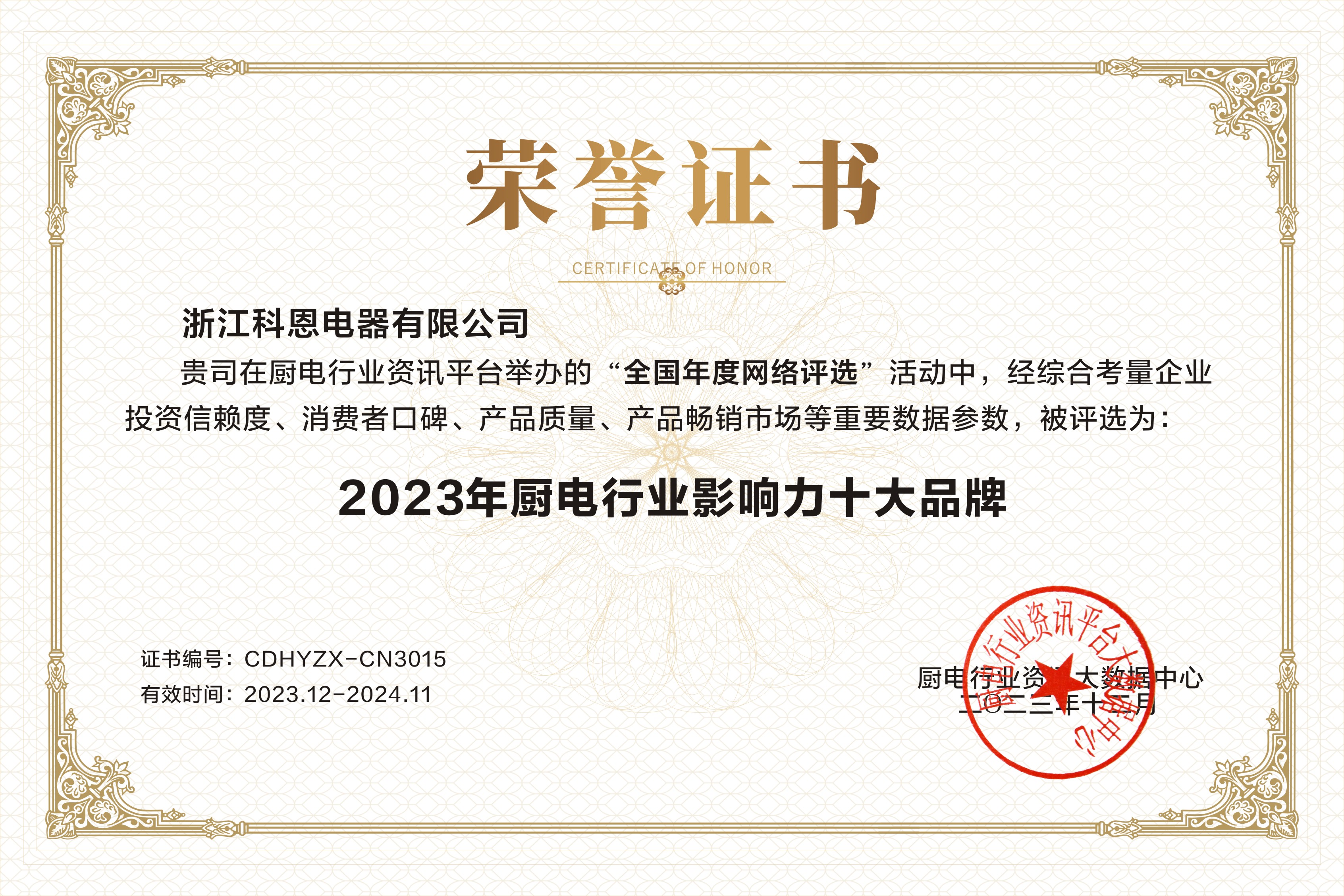 匠心“灶”就精品,品質(zhì)見證實(shí)力!2023年,浙江科恩電器有限公司再次憑借實(shí)力連獲3獎!