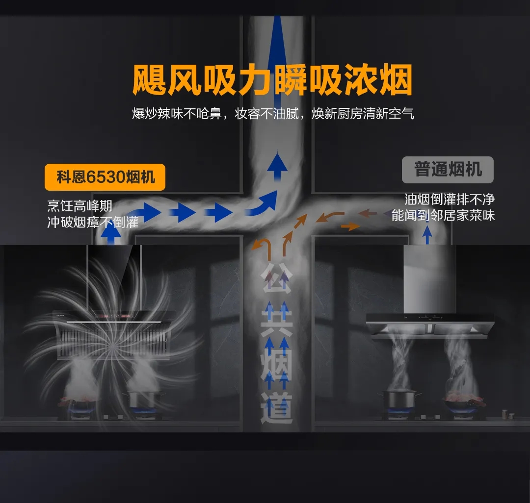 科恩6530免清洗油煙機(jī)+KN700金剛防爆灶,就十分符合中國家庭烹飪需求。