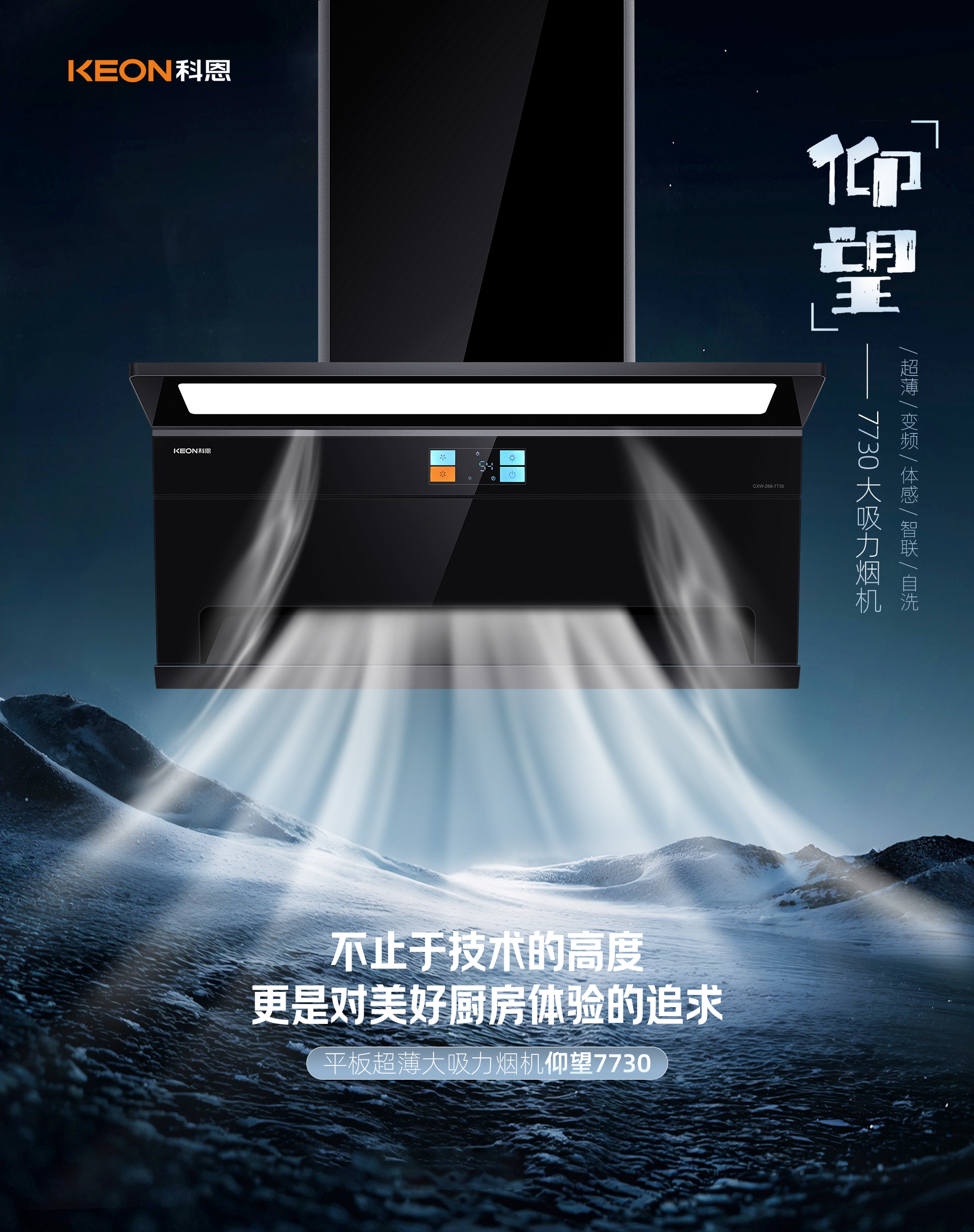 科恩7730智能聯(lián)動煙機整機采用特氟龍工藝,一體成型的設(shè)計,不僅使其具備不沾油的卓越特性,更在外觀上顯得格外美觀。這種獨特的工藝處理,讓廚房器具在日常使用與清潔過程中都變得輕松便捷,始終保持著光潔如新的狀態(tài),為廚房增添了一份精致與高雅。其新輕薄的設(shè)計重構(gòu)了廚房的空間格局。120°上仰天鵝頸設(shè)計堪稱一大亮點,曲頸的巧妙構(gòu)造營造出2.0cm超薄的視覺效果。在精控分寸之間展現(xiàn)出無與倫比的美感,同時釋放出開闊的空間,讓烹飪者能夠在寬敞舒適的環(huán)境中盡情施展廚藝,締造更為舒心愉悅的烹飪體驗。