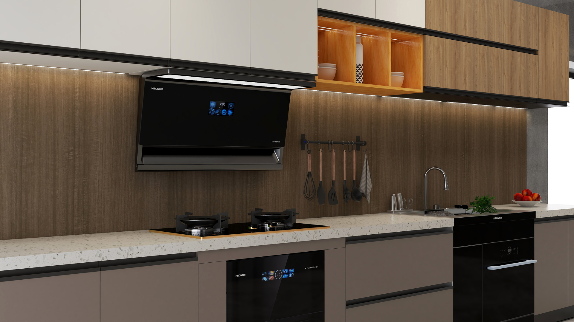 性能方面,科恩 7270 煙機堪稱 “凈煙利器”。頂側雙吸設計能精準直卷雙灶濃煙,實現(xiàn) 1+1>2 的強力凈煙效果;25m³/min 的大吸力搭配 895×468mm 超寬屏攏煙,即使是中式爆炒也能輕松應對,讓廚房空氣時刻清新。三檔風量隨心調(diào)節(jié),無論是小火慢燉還是大火爆炒,都能一鍵匹配最佳吸力,瞬間煥新廚房空氣。智能操控,便捷下廚。智能幻彩屏搭配模塊化按鍵,功能區(qū)顯示直觀清晰,操作簡單易懂,廚房新手也能輕松上手。揮手智控科技,零觸碰即可操控開關機與調(diào)節(jié)風量,油污不沾面板。時間顯示功能,精準監(jiān)控烹飪時間,助你更好管理烹飪流程,下廚有條不紊,告別手忙腳亂。