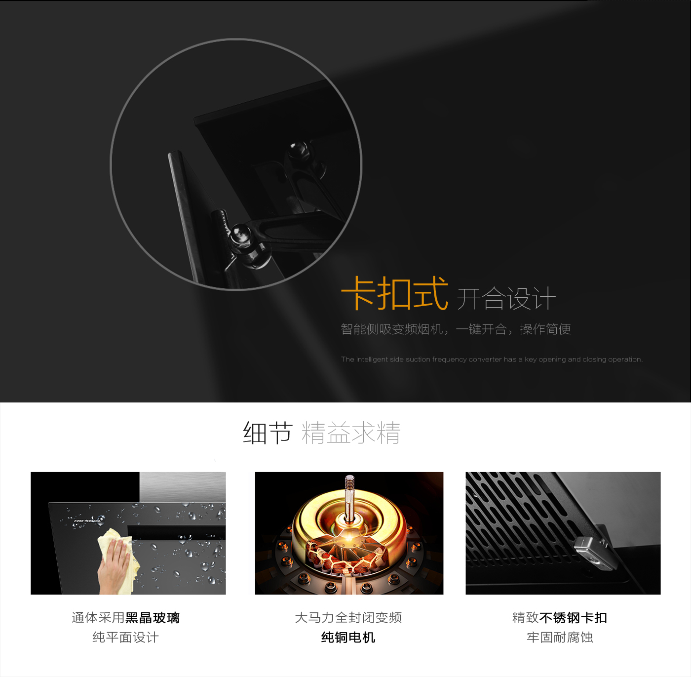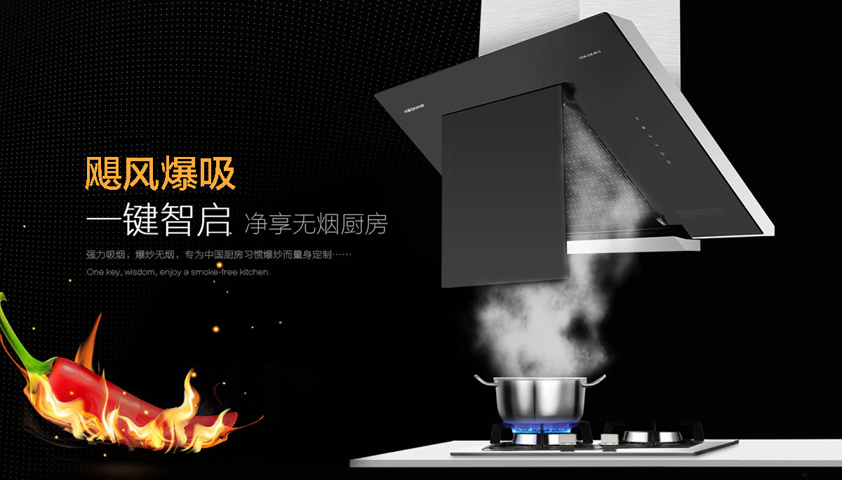 - 智能側(cè)吸變頻煙機,解決公共煙道烹飪高峰排煙難的問題。