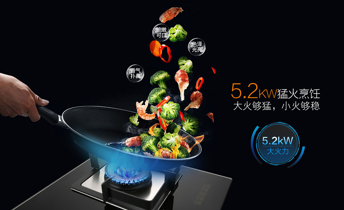 • 5.2KW大火力,精控勁火,火焰平穩(wěn),受熱均勻,節(jié)能猛火兩不誤