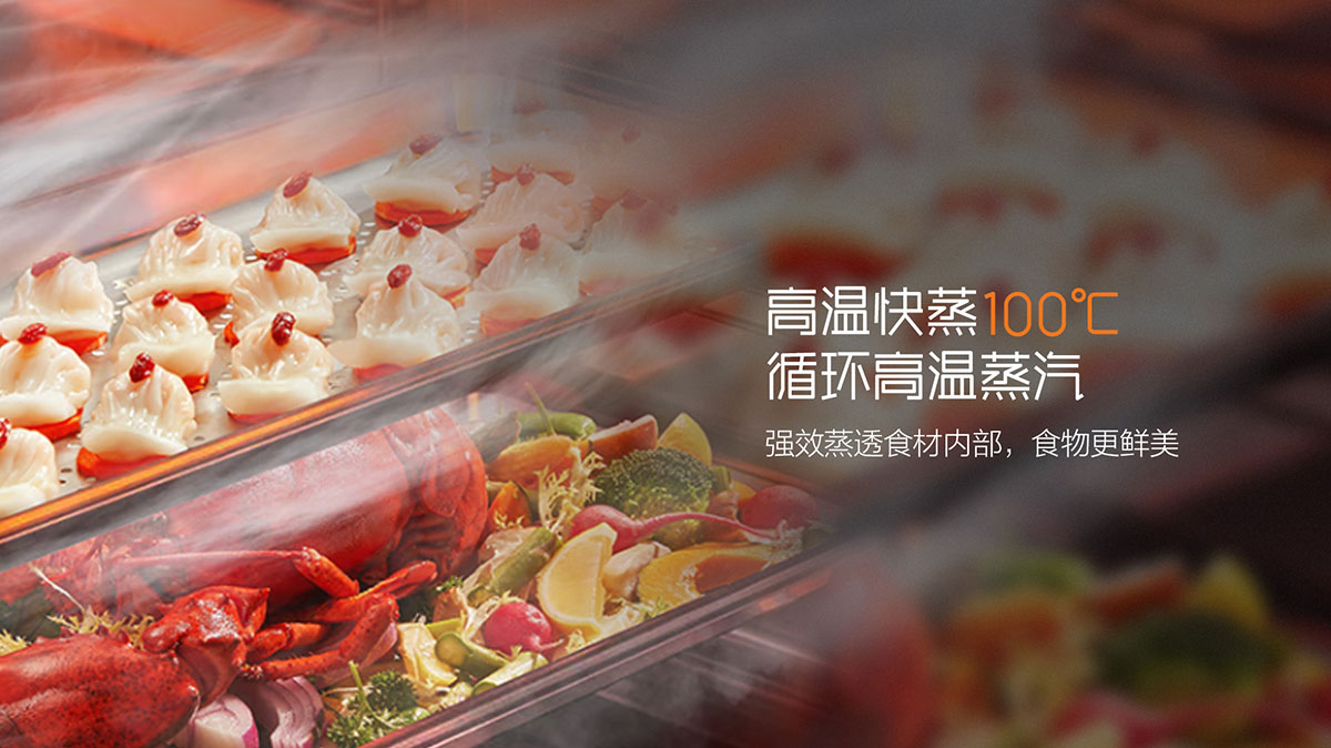 - 360°立體環(huán)噴技術(shù),加速動(dòng)態(tài)蒸汽內(nèi)循環(huán),食物鎖鮮更營養(yǎng)
