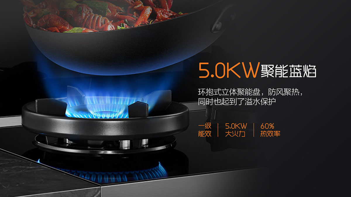 - 環(huán)抱式立體聚能環(huán),防風(fēng)聚熱,熱效率比普通聚能環(huán)提升15%