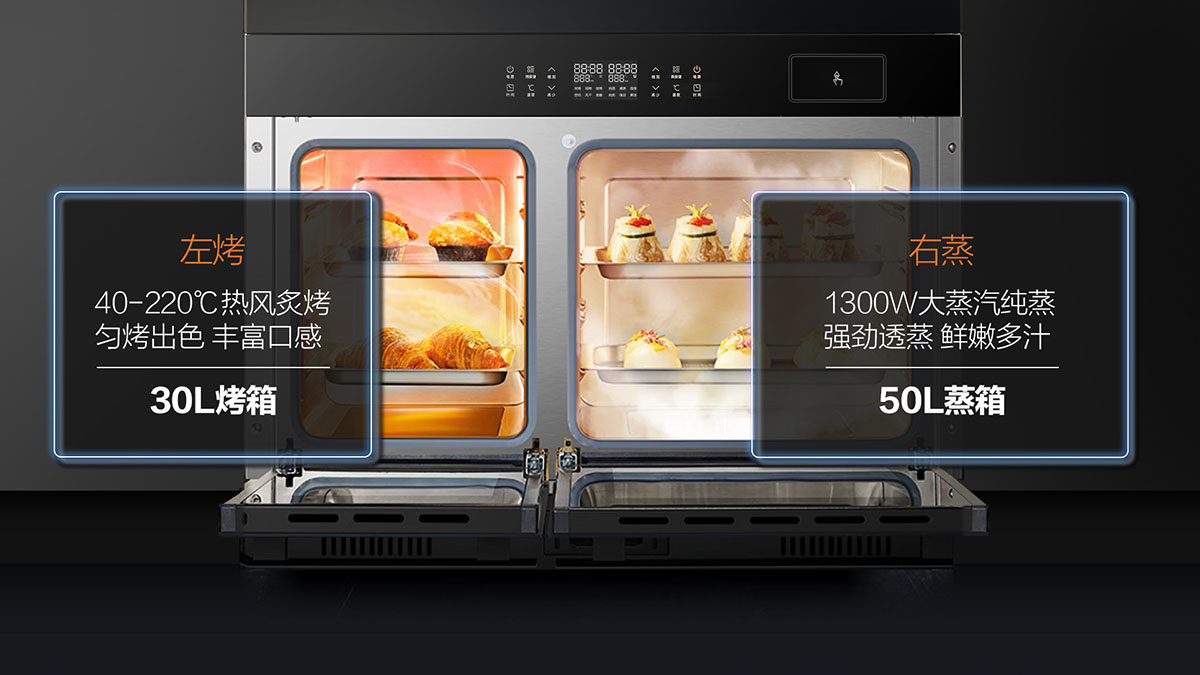 - 大有可為,80L大容量,左烤右蒸,雙管齊下,烹飪更快捷