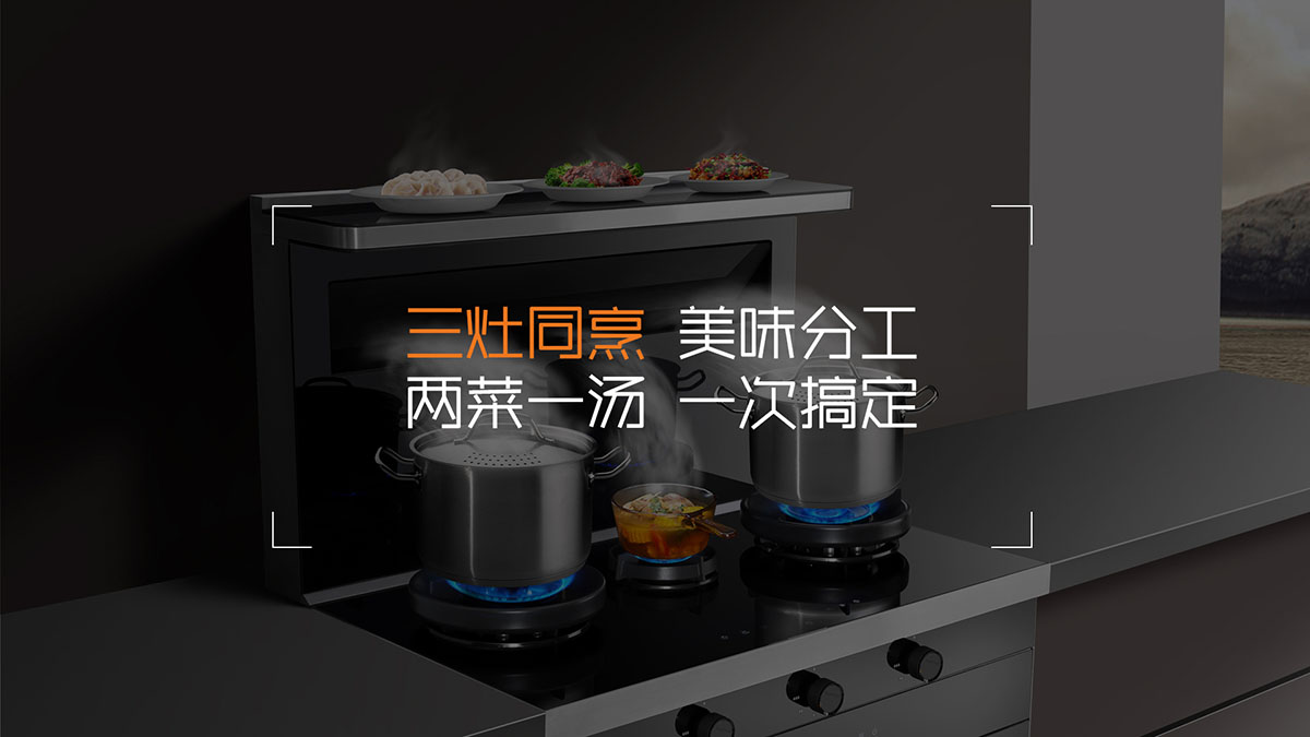 - 三灶同烹,5.0kW猛火爆炒+1.6kW文火慢燉,高效全能,美味加速