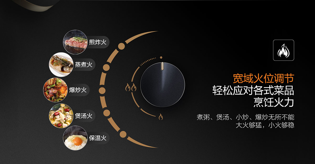 - 5.0KW大火力,凈藍(lán)猛火,爆炒更給力