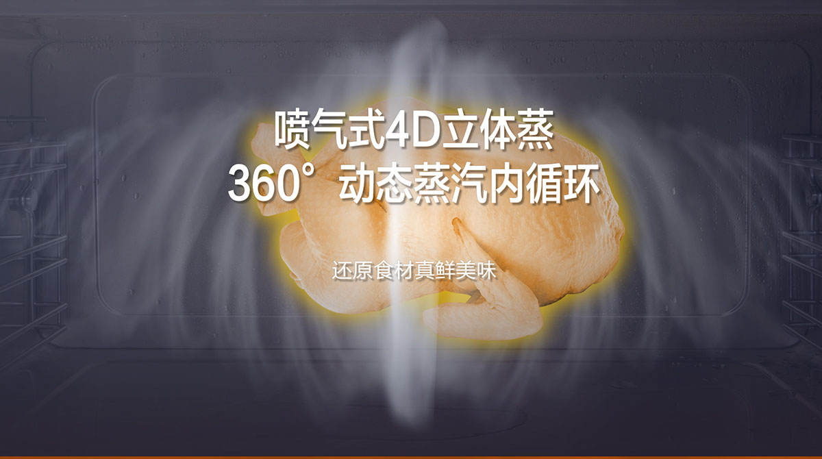 噴氣式4D立體蒸,360°動(dòng)態(tài)蒸汽內(nèi)循環(huán),還原食材真鮮美味