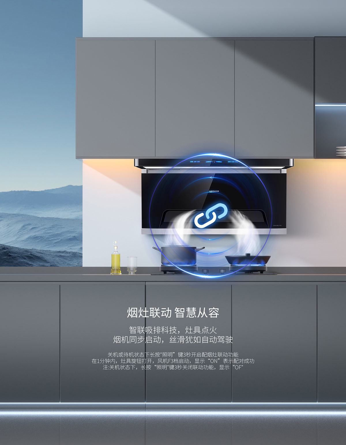 風(fēng)隨火啟,煙灶聯(lián)動,智慧從容,智聯(lián)吸排科技