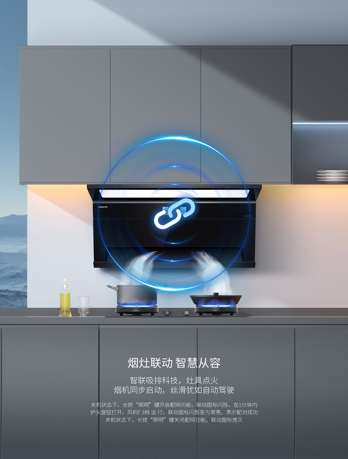 風(fēng)隨火啟,煙灶聯(lián)動(dòng)智慧從容,智聯(lián)吸排科技