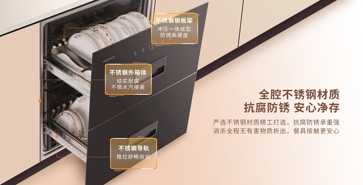 產(chǎn)品型號:ZTD110L-K50 (大雙抽經(jīng)典款)產(chǎn)品名稱:科恩大雙抽消毒柜