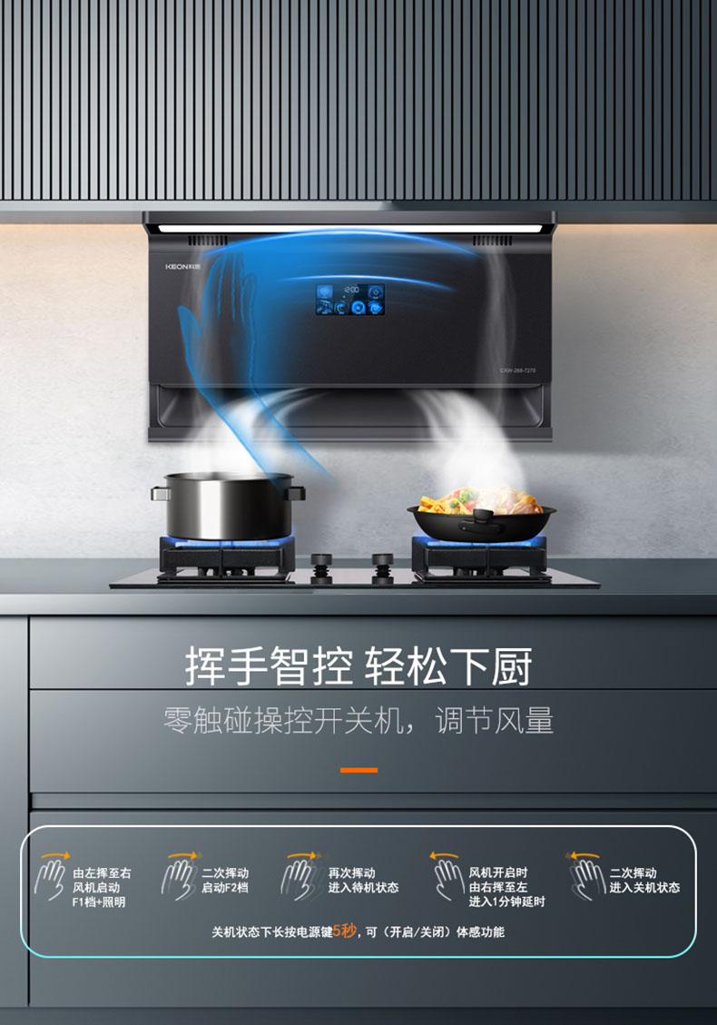 揮手智控,零觸碰操控開關(guān)機(jī),調(diào)節(jié)風(fēng)量