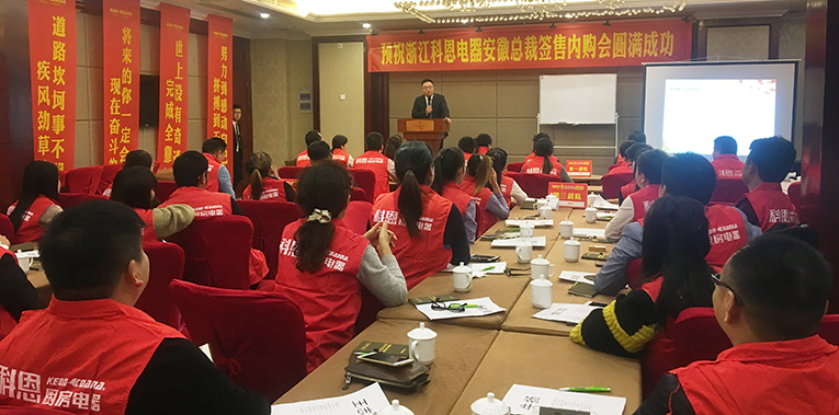 11月9日,一群充滿(mǎn)活力和激情的科恩安徽經(jīng)銷(xiāo)商以及優(yōu)秀店長(zhǎng)匯集合肥麥肯希酒店,參加為期兩天的科恩電器安徽總裁簽售內(nèi)購(gòu)會(huì)培訓(xùn)大會(huì)暨啟動(dòng)儀式??贫麟娖鳡I(yíng)銷(xiāo)精英與安徽經(jīng)銷(xiāo)商家人歡聚一堂,百余人共同見(jiàn)證了第一屆科恩電器總裁簽售會(huì)的盛大啟動(dòng)。